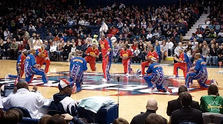 I have very fond memories of seeing the Harlem Globetrotters in Columbia, MO - at the Hearnes Center - when I was a boy in elementary school. I imagine many adults my age have similar nostalgic memories. My favorite player on the team at that time was Curly Neal. I remember being mesmerized by his ball-handling skills; I also remember pretending to be him in the months that followed as I dribbled the basketball in endless circles at the neighborhood court.Tonight Miles and I saw the current Globetrotters team at the All-State Arena in Chicago. We had been anticipating the game against the infamous "Washington Generals" for a couple of weeks, and Miles was really excited about going.